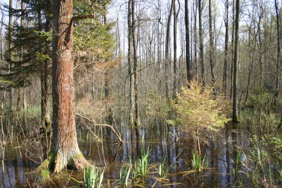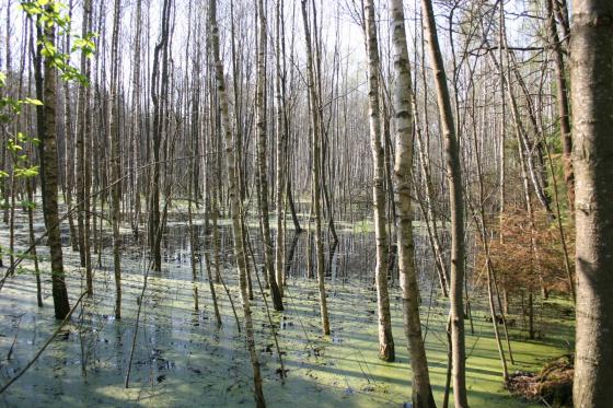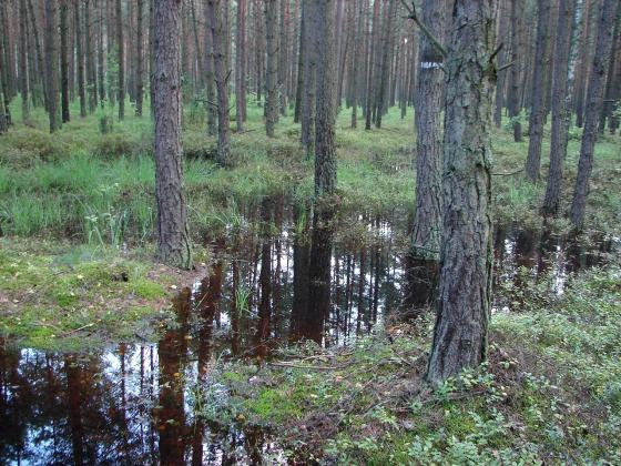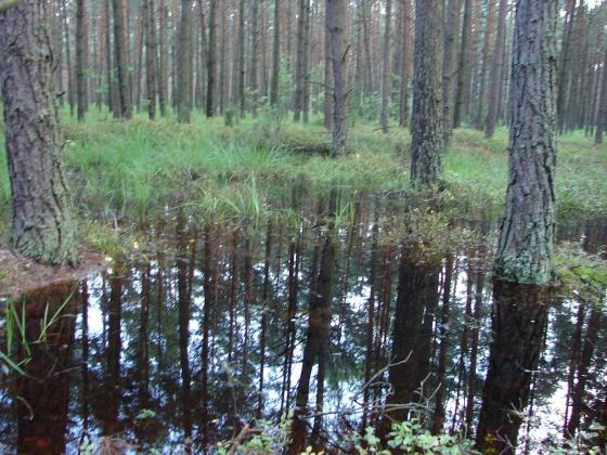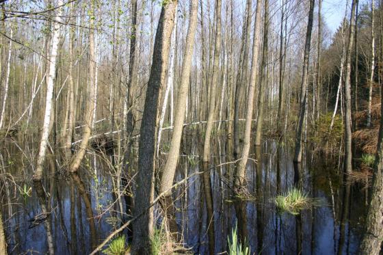 Podtopienia powierzchni leśnych.